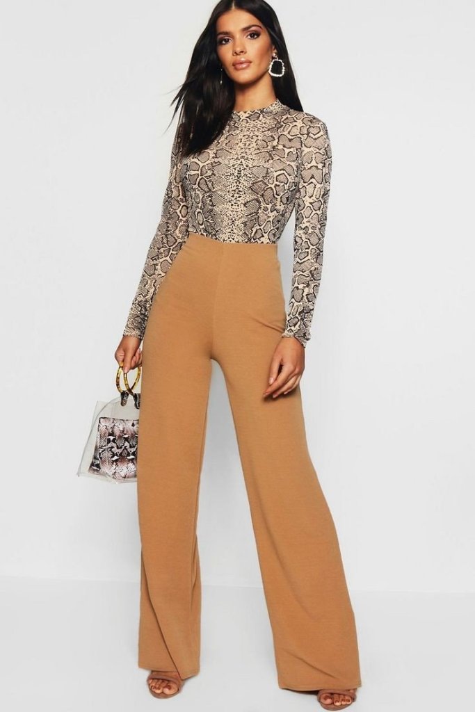 Tame your wide-legged trousers with a figure-hugging bodysuit.