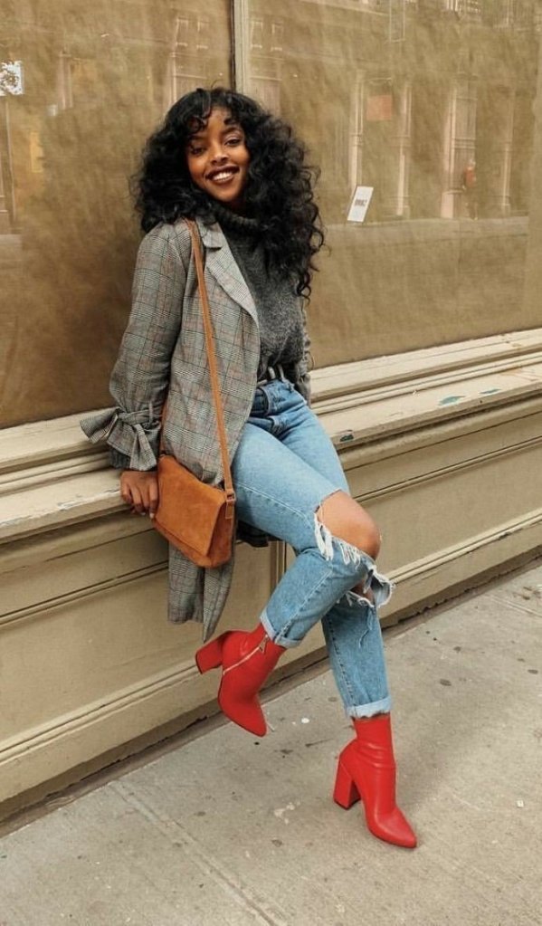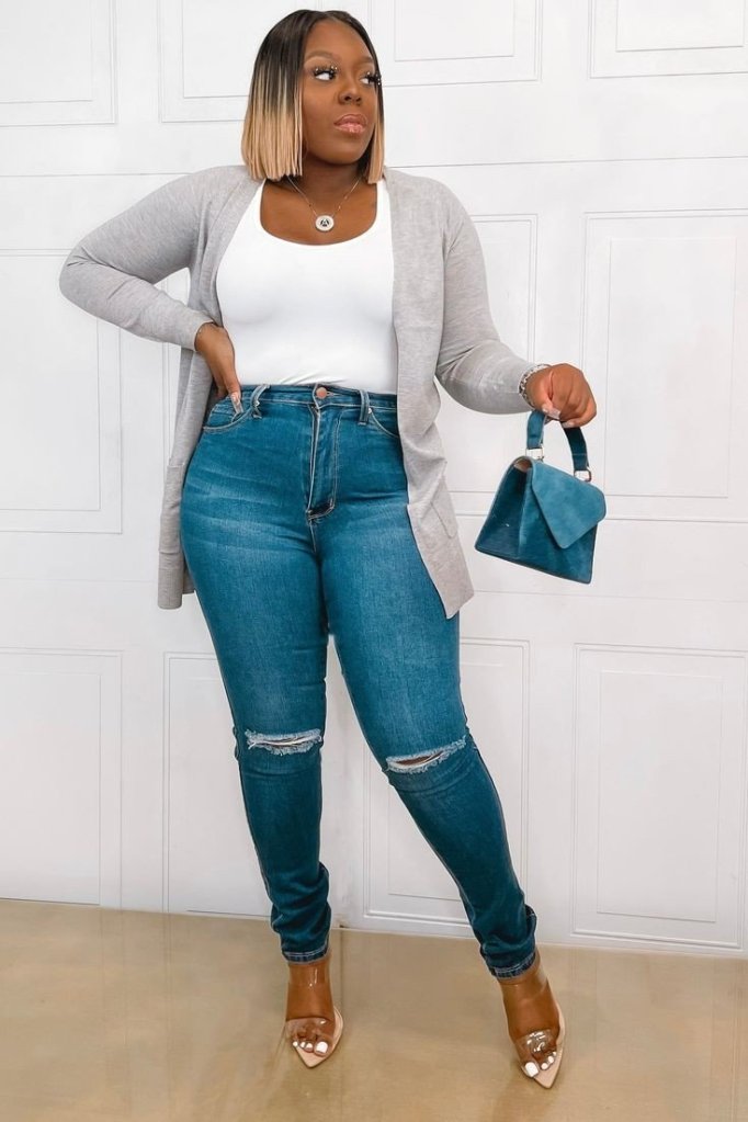 The perfect pairing in my book is adding an oversized blazer or boyfriend-style blazer to your skinny jeans. This would be great with a pair of black skinny jeans for a business casual look too. Think a slightly longer blazer too. A fitted, slim blazer is a hard no here.