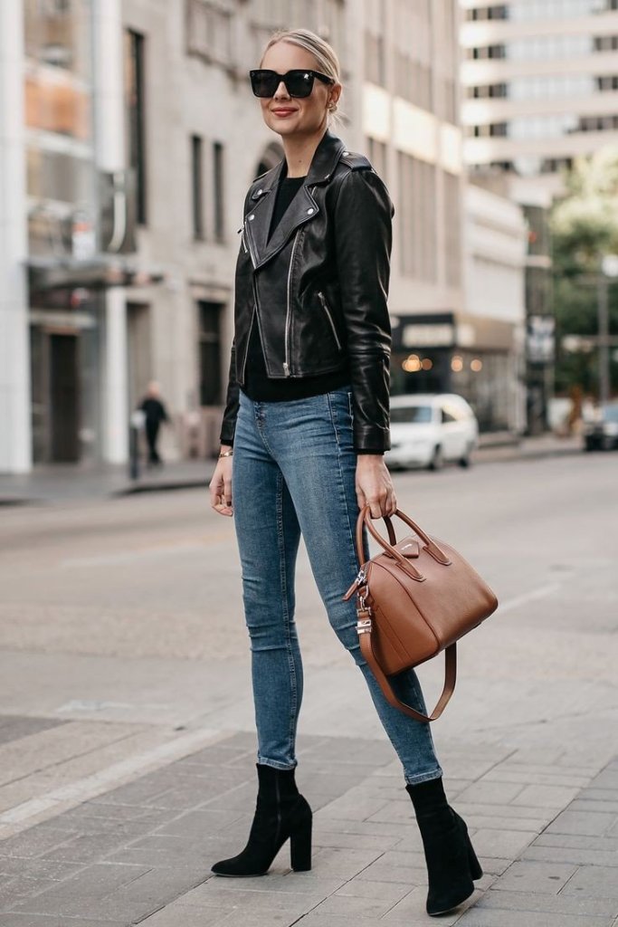 There’s something super cool about an oversized leather jacket paired with skinnies. I’ll still allow a more fitted leather jacket so long as you pair with a chunky sneaker or boots and an oversized top.
